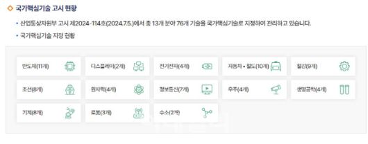우리나라는 13개 분야 76개 기술을 국가핵심기술로 지정해 관리 중이다. (제공=한국산업기술보호협회. 산업통상자원부, 국가정보원) |