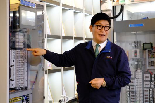 그는 "지난해에 프랑스 다국적 기업인 슈나이더일렉트릭과 '블록셋 판넬' 제조 및 판매 라이선스 계약을 체결했다. 이를 기반으로 음성공장에 블록셋 판넬 전용 생산설비를 구축했다. 음성공장은 판금, 도장까지 일련이 공정이 가능한 스마트공장"이라고 설명했다.