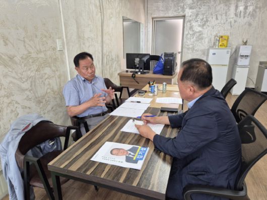 김기섭 전 고창부안축협 비상임이사(왼쪽)가 11일 그의 사무실에서 본지와의 인터뷰에서 "'조합원을 위한 축협, 조합원을 섬기는 축협, 조합원의 이익에 앞장서는 축협' 강한 고창부안축협을 만들겠다"고 약속했다. /신동준 기자 |