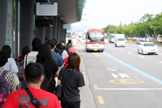 지난 10일 광주광역시 서구 광천종합버스터미널 정류장에서 시민들이 버스를 기다리고 있다. /뉴스1 |