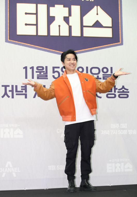 스타강사 조정식이 서울 마포구 상암동 스탠포드 호텔에서 열린 채널A 새 예능 프로그램 '성적을 부탁해 : 티처스' 제작발표회에서 포즈를 취하고 있다. /뉴스1 |