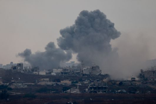 10일(현지시간) 가자지구에서 폭발로 인한 연기가 피어오르고 있다./로이터 연합뉴스 |
