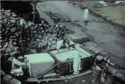 1933년 서울 세검정 개울가에서 장판지 뜨는 장면. 더드 헌터가 직접 찍은 사진이다. 무송출판 제공. |
