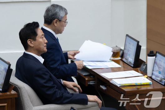 오세훈 서울시장과 정근식 서울시교육감이 11일 오후 서울 중구 서울시의회에서 열린 제331회 정례회 제2차 본회의에 자리하고 있다. 2025.6.11/뉴스1 ⓒ News1 이승배 기자 |
