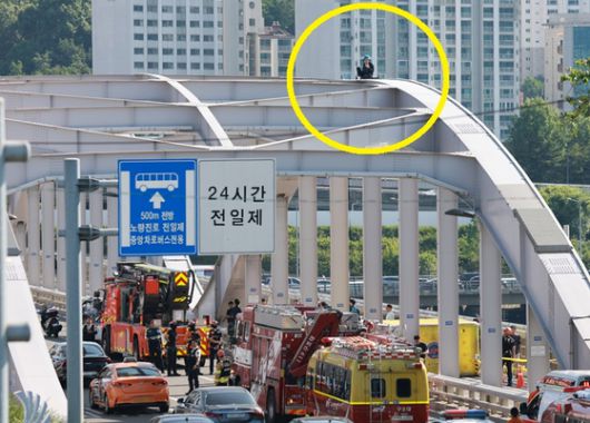 경찰과 소방에 따르면 오늘(11일) 오후 3시 30분쯤 한 남성이 노들섬 근처의 높이 약 8m 한강대교 아치 위에 올라가 있다는 신고가 접수됐습니다.