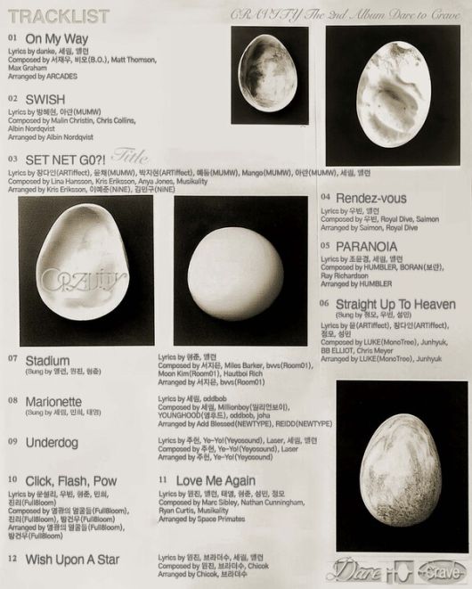 소속사 스타쉽엔터테인먼트는 지난 10일 크래비티 공식 SNS를 통해 크래비티의 두 번째 정규 앨범 '데어 투 크레이브'(Dare to Crave) 트랙리스트를 공개했다.