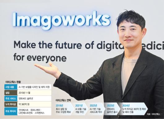 이마고웍스는 2019년 11월, 한국과학기술연구원(KIST) 출신의 김영준 대표가 설립한 AI 기반 보철물 디자인 솔루션 기업이다. 김 대표는 서울대 기계공학과에서 박사 학위를 취득했다. 그 과정에서 의료용 캐드(CAD) 소프트웨어 관련 분야의 연구에 매진해 왔다. 의료용 CAD란 사람의 인체에 있는 발, 뇌, 무릎, 간 등의 3차원 구조에 대한 소프트웨어 기술로 치료에 도움이 되는 솔루션을 만드는 것을 말한다. 또 인적 구성을 연구·개발 중심으로 꾸리고, 끊임없이 기술 고도화를 추진 중이다. 실제로 이마고웍스 구성원은 서울대 캐드(CAD) 연구실과 KIST 의공학연구소 출신 석·박사 인력이 다수를 차지하고 있다.