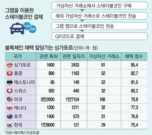 그랩은 지난해 3월 싱가포르를 중심으로 비트코인, 이더리움, 테더, USDC에 싱가포르달러와 연계된 스테이블코인 'XSGD'까지 5개 가상자산 기반 결제 시스템을 구축했다. 그랩은 싱가포르에서 택시를 이용하거나 배달 음식을 먹는 등 여행에 필요한 대부분의 상황에서 이용되는 앱이기에 가상자산, 특히 스테이블코인을 갖고 있다면 모든 게 다 가능한 셈이다.