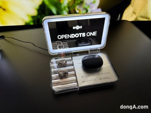 ‘오픈닷 원’은 샥즈 최초의 클립온 타입 이어폰으로, 한쪽당 6.5g의 가벼운 무게와 티타늄을 사용한 합금 프레임, 고급 실리콘 마감으로 착용감을 높인 것이 특징이다. 현장에서 직접 착용해 보니 귀에 끼웠을 때 불편함이 없으면서도 고정이 확실하게 돼 안정적인 느낌이 들었다. 달리기 등 격렬한 운동을 해도 귀에서 빠지지 않는다고 한다.