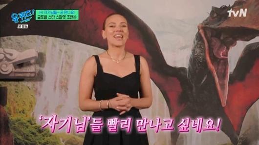 스칼릿 조핸슨은 오는 개봉을 앞둔 영화 '쥬라기 월드: 새로운 시작'과 함께 7월 내한 소식을 전하며 "'자기님' 빨리 만나고 싶다"라고 '유퀴즈' 출연을 예고했다.