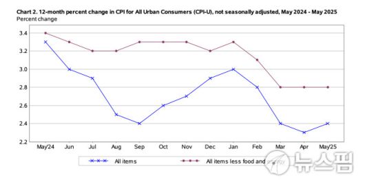 미국 CPI 추이.[차트=미 노동통계꾹(BLS)] 2025.06.11 mj72284@newspim.com |