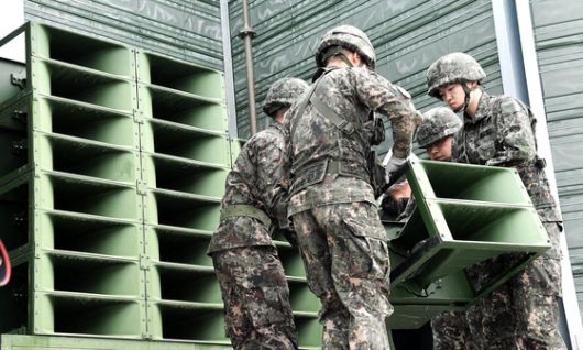 이재명 대통령이 11일 대북 확성기 방송을 전면 중지하라고 지시했다. 사진은 2018년 5월 1일 육군이 확성기 시설을 철거하는 모습. [중앙포토] |