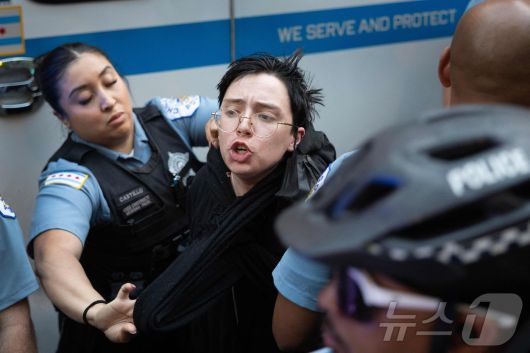 2025년 6월 10일 일리노이주 시카고 루프에서 열린 시위에서 경찰이 한 사람을 연행하고 있다. 도널드 트럼프 행정부의 이민 단속에 반대하는 시위는 로스앤젤레스(LA)를 넘어 시카고·뉴욕을 포함해 이민 인구가 많은 주요 도시로 확산하고 있다 ⓒ AFP=뉴스1 ⓒ News1 신기림 기자 |