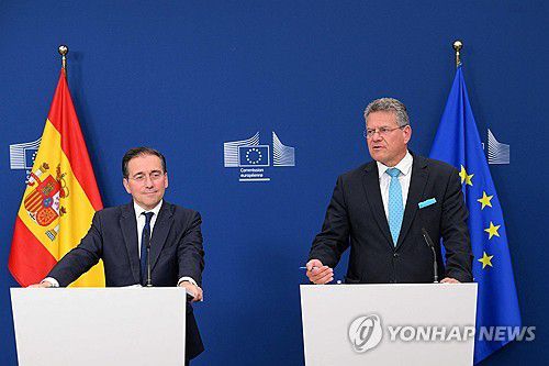 마로시 셰프초비치 EU 무역·경제안보 집행위원과 호세 마누엘 알바레스 스페인 외무장관은 11일(현지시간) 벨기에 브뤼셀에서 기자회견을 열고 EU-영국 지브롤터 협정에 대한 정치적 합의가 타결됐다고 밝혔다.