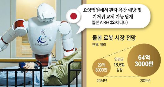 일찌감치 2006년 초고령사회로 진입해 돌봄 인력난에 시달리고 있는 일본은 이미 돌봄 로봇을 개발해 현장에 투입하고 있다. 올해 3월 일본 와세다대 연구진이 개발한 AI 기반의 돌봄 로봇 ‘AIREC’는 요양 환자의 기저귀를 갈아주고 욕창을 예방하는 등 실제 돌봄 인력의 업무를 대신할 수 있는 다양한 기능을 선보였다. 현재 일본 정부는 고령자의 개호(介護·돌봄)보험 범위에 돌봄 로봇을 포함하고, 돌봄 로봇을 구매하면 보험을 통해 일부 비용을 지원받도록 하고 있다.