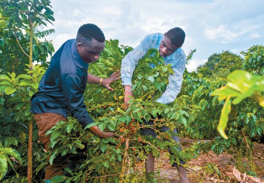 탄자니아 음보지 지역의 커피생산자조합원들이 커피 생산성 향상을 위해 병해충 피해 여부와 열매의 생육 상태를 모니터링하고 있다. [사진 굿네이버스] |
