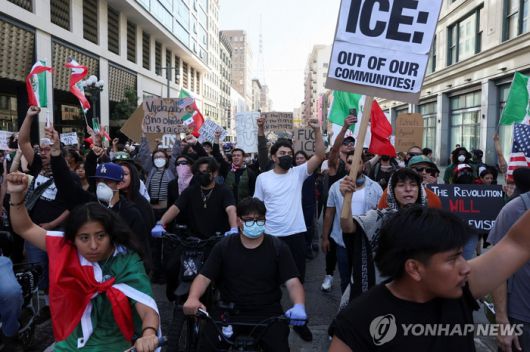 미국 도널드 트럼프 행정부의 불법이민자 단속·체포에 반발해 미국 로스앤젤레스(LA)에서 벌어진 시위가 닷새째로 접어든 가운데 LA 시 당국이 도심 일부 지역에 야간 통행금지령을 내렸다.
