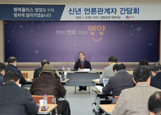 오도창 경북 영양군수가 지난 1월 8일 영양군청에서 언론관계자들과 신년 간담회를 갖고 있다. 오 군수는 이 자리에서 ‘미얀마 난민 정착지원 시범사업’ 구상을 밝혔다. 영양군 제공 |