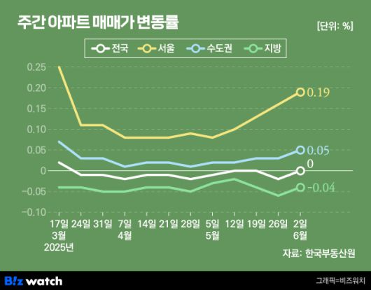 12일 한국부동산원 주간아파트가격동향에 따르면 이달 첫째 주(2일 기준) 서울 아파트 매매가격은 0.19% 상승해 직전 주 0.16% 대비 상승폭을 키웠다.