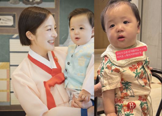 이어 똘망 똘망한 눈망울로 정면을 응시 중인 아들의 모습과 함께 "나를 이렇게 노려보고 깩 소리를 지른다"며 눈물을 흘리는 이모티콘을 덧붙였다.