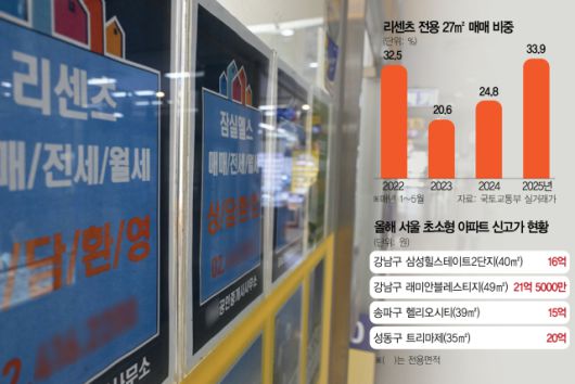 강남 3구의 다른 단지에서도 초소형 아파트 몸값이 높아지고 있다. 강남구 삼성동 ‘삼성힐스테이트2단지’ 전용 40㎡는 올해 3월 16억 원에 거래되며 신고가를 경신했다. 송파구 ‘헬리오시티’ 전용 39㎡도 같은 달 15억 원에 팔리며 신고가를 새로 썼다. 헬리오시티 전체 매매 거래에서 전용 39㎡가 차지하는 비중은 지난해 약 10%에서 올해 12%로 상승했다. 이밖에 성동구 ‘트리마제’ 전용 35㎡도 최근 2개월 새 2억 원 뛴 20억 원에 거래됐다. 남혁우 우리은행 WM영업전략부 부동산연구원은 “최근 강남 3구를 중심으로 집값이 크게 뛰면서 가격 문턱이 높아진 상황”이라며 “기존 20평대를 노리던 수요가 10평대로 이동하는 전형적인 갭 메우기 현상이 나타나고 있는 것”이라고 말했다.