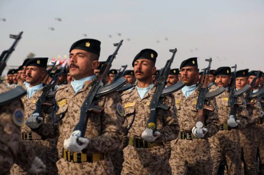 지난 1월 이라크 군인들이 바그다드 북부 캠프 군사 기지에서 이라크 군대 창설 104주년을 기념하는 육군의 날 기념식에서 행진을 하고 있다 [AFP] |