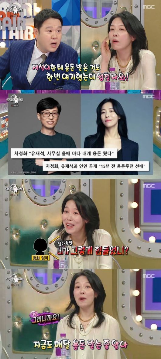 배우 차청화가 8살 연상 유재석에게 용돈을 받은 것에 대해 해명했다.