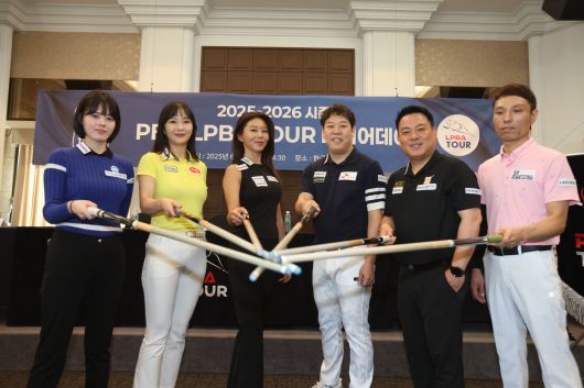 PBA는 지난 11일 서울 중구 한국프레스센터에서 2025~2026시즌 PBA-LPBA투어 개막 미디어데이를 개최했다. 미디어데이에는 지난 시즌 남녀 대상 수상자 강동궁(SK렌터카)과 김가영(하나카드)을 포함해 조재호(NH농협카드), 최원준(에스와이), 김상아(하림), 서한솔(우리금융캐피탈)이 참석했다.