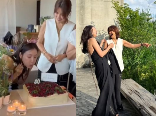 주인공답게 왕관을 쓴 최지우는 '50' 생일초가 꽂혀 있는 케이크와 함께 생일 축하 노래에 맞춰 리듬을 타고 있어 눈길을 끈다. 최지우의 생일을 축하하며 환한 미소를 짓고 있는 이들의 얼굴도 훈훈함을 안긴다.