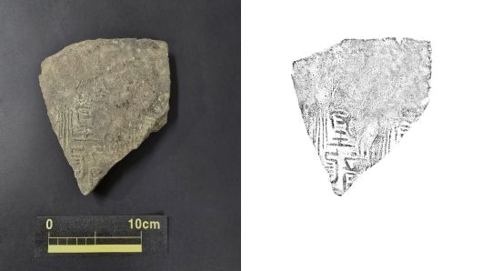 이 글자 형태는 황룡사 남문지 동편 건물지와 강당지 북동편지구 출토품, 동아대 박물관 소장품 등과 같은 것입니다.