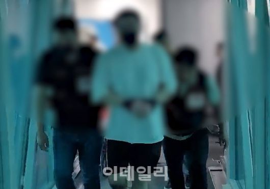 2020년 국내에서 마약을 팔다 태국으로 도주했던 40대 A씨가 현지에서 검거돼 형기를 마친 뒤, 지난달 23일 인천국제공항을 통해 강제 송환되고 있다.(사진=경기남부경찰청) |
