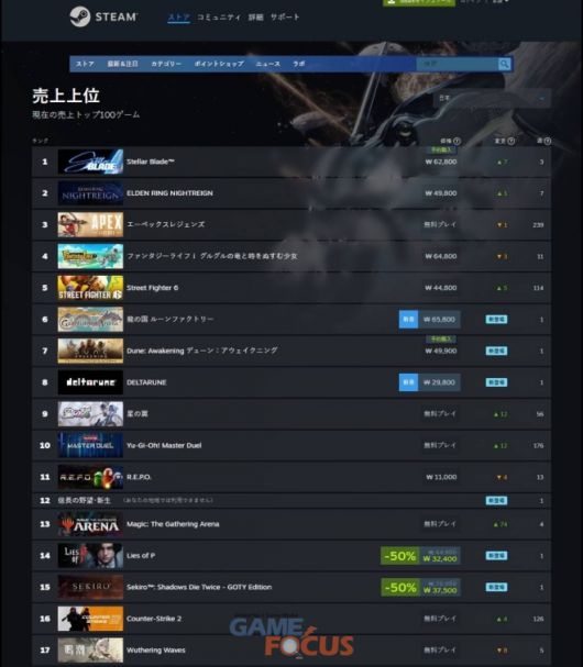 그리고 실제 게임이 발매된 12일 오전, '스텔라 블레이드'는 다시 한번 스팀 글로벌 최고 인기순위 2위로 뛰어올랐다. 동시접속자 수는 6.8만명을 기록하고 갈수록 상승하는 추세이다.