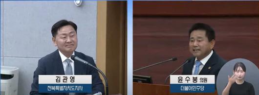 김관영 전북특별자치도지사와 윤수봉 전북도의원. 전북도의회 제공 |