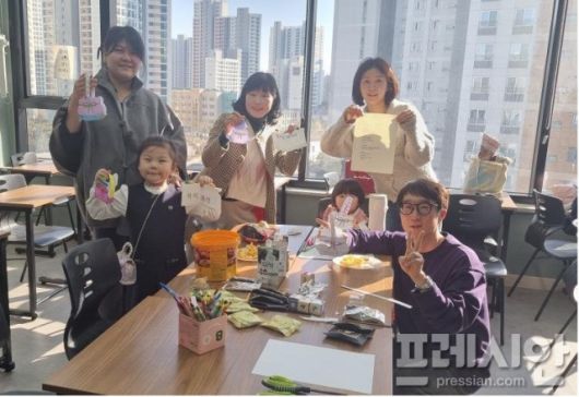 ▲전북 완주군 ‘책육아 동아리’ 2기 참가자들이 책놀이 활동 후 직접 만든 독후 활동 작품을 들고 기념사진을 찍고 있다. ⓒ완주군 |