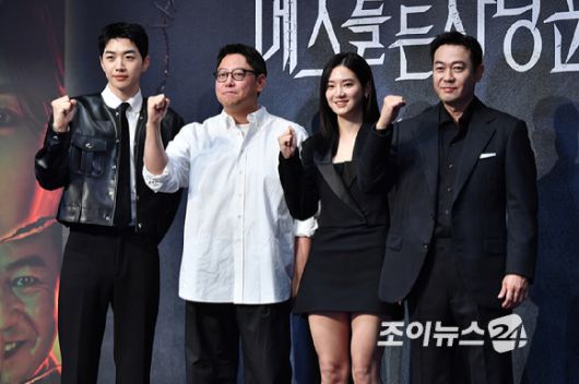 [조이뉴스24 문수지 기자] 배우 강훈, 이정훈 PD, 배우 박주현, 박용우가 12일 오전 서울 구로구 신도림동 라마다서울신도림호텔에서 진행된 LG유플러스 STUDIO X+U 새 미드폼 드라마 '메스를 든 사냥꾼' 제작발표회에 참석해 포즈를 취하고 있다.