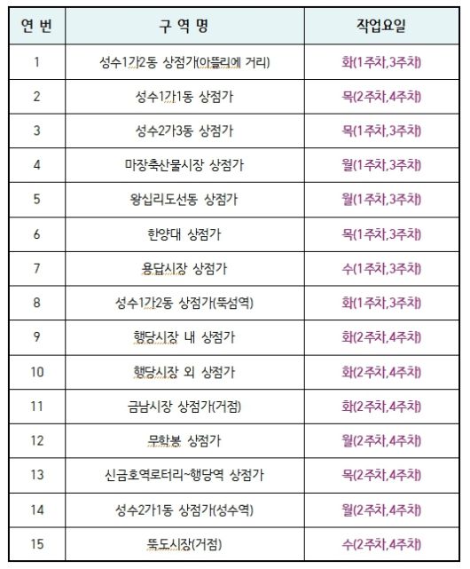 서울 성동구의 ‘음식물 쓰레기 수거 용기 세척 사업’ 대상 구역. 성동구 제공 |