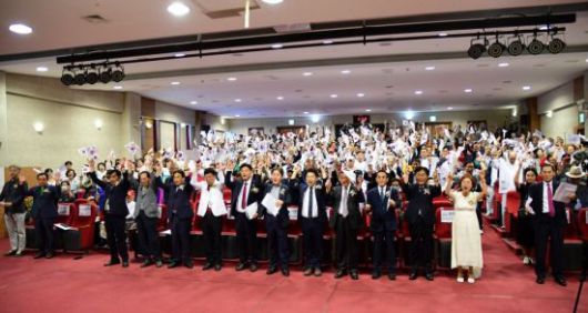 부산지방보훈청 41회 국가유공자 나라사랑 기도회 참석자를이 만세삼창을 외치고 있다. 부산지방보훈청 제공 |