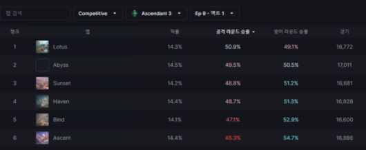 12일 유출된 발로란트 클라이언트 데이터마이닝에 따르면 차기 시즌 경쟁전 맵 로테이션에 어비스가 복귀한다. 배틀패스 종료가 오는 25일에 종료되는 만큼 26일부터 어비스를 경쟁전에서 즐길 수 있을 전망이다.