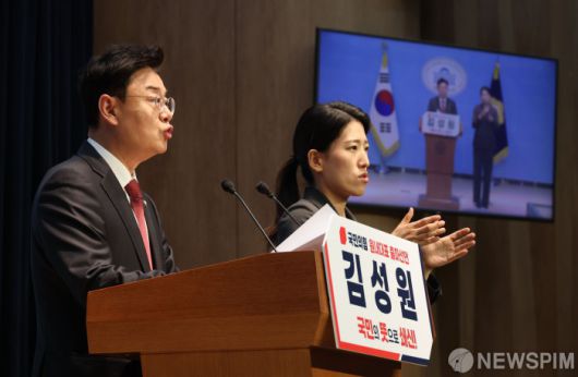 [서울=뉴스핌] 김학선 기자 = 김성원 국민의힘 의원이 12일 오전 국회 소통관에서 원내대표 출마 선언 기자회견을 하고 있다. 2025.06.12 yooksa@newspim.com |