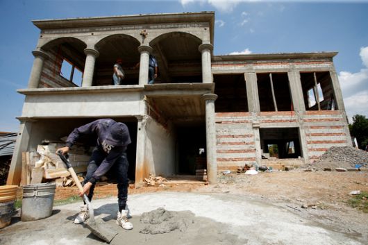 지난 5일(현지시간) 멕시코 산 바르톨로메 키알라나의 한 건설 현장. 미국 이민자가 보낸 돈으로 집을 짓고 있다. 로이터=연합뉴스 |