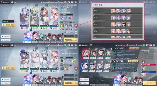 인기 조합 기능을 통해 유저는 게임 내에서 다른 단장의 스테이지 클리어 조합과 조합의 클리어 횟수를 직접 확인할 수 있다. 해당 기능은 일반 스테이지와 이벤트 스테이지, 토벌 스테이지뿐만 아니라, 도전 던전인 ‘가상 환상 세계’, ‘허구의 심연’에서도 활용 가능하여, 강력한 적들을 보다 수월하게 공략하는 데 도움이 될 것이다.