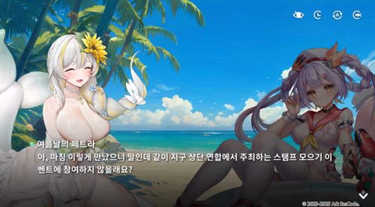 신규 이벤트 ‘소녀와 바닷가의 속삭임 (상)’에서 전설 속의 스타루트 조개를 찾으려는 두 소녀가 함께 협력하여 스탬프 이벤트에 참가한다.