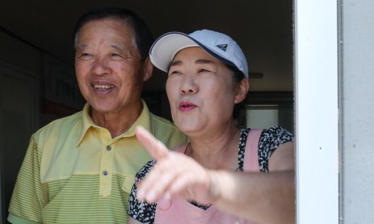 군이 대북 확성기 방송을 중지한 다음 날인 12일 오전 인천 강화군 송해면 당산리 마을회관에서 김완식 송해면 노인회장(왼쪽)과 당산리 주민 박찬임씨가 창문을 열고 밖을 보고 있다. 김영원 기자 forever@hani.co.kr |