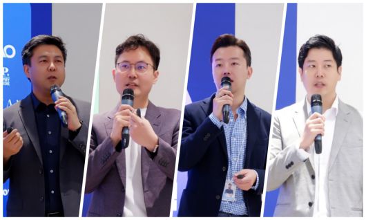 몰로코 경영진이 12일 미디어 브리핑에서 발표를 하고 있다. (왼쪽부터) 안익진 대표, 전동환 CTO, 안재균 한국 지사장, 이현채 커머스 미디어 아태지역 총괄 (c)플래텀 |
