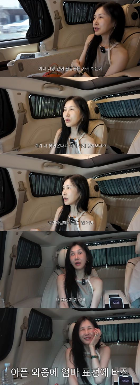 그러면서 "내 표정이 이랬다더라"라며 눈을 크게 떠 보였다. 이어 "(지온이가) 울다가 내 표정 보면서 웃어. 너무 아팠다더라. 인대가 끊어진 거다. 봤더니 운동화 끈도 완전 느슨해져 있더라. 제대로 묶지도 않고"라며 속상해했다.