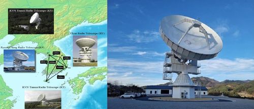 한국형우주전파관측망(KVN) 배치도(사진 왼쪽)와 새로 추가된 KVN 4호기(KVN 평창) [우주항공청 제공] |