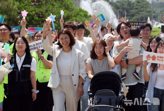 손 의원은 이날 청년 50여 명과 함께 국회에 등원했다. 전남 영광 출신인 손 전 대변인은 1995년생으로 국회 최연소 의원이다. 이화여대 재임 당시 총학생회장을 맡았고, 이후 진보당에서 수석대변인을 지냈다.