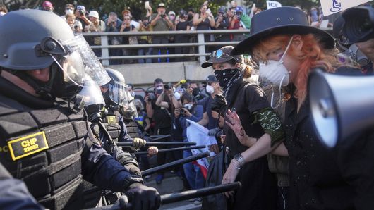 시위대 일부는 바리케이드를 뛰어넘어 경찰관들과 몸싸움을 벌였고, 경찰차에 물건을 던지는 모습도 포착됐다. 경찰은 86명을 체포한 뒤 이 가운데 34명을 폭행과 체포 저항 등 혐의로 기소했습니다.