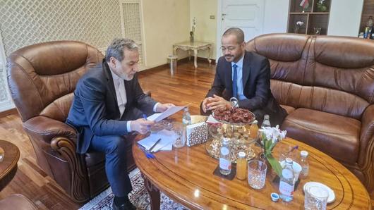 ▲ 지난달 23일(현지시간) 이탈리아 로마에서 열린 미국과 이란의 5차 핵협상. 압바스 아락치 이란 외무장관(왼쪽)이 바드르 알부사이디 오만 외무장관과 대화하고 있다.