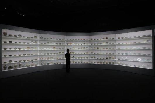 제1부 전시실에는 조선 전기 도자의 흰빛을 향한 여정을 한눈에 볼 수 있는 특별한 공간이 마련됐다. 길이 14m, 높이 3m의 벽에 고려 말 상감청자에서 조선의 분청사기와 백자까지 박물관 소장 도자 300여건이 색의 변화에 따라 배치됐다.